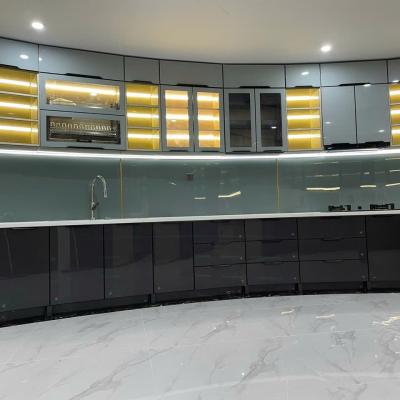 Phù hợp với phong cách hiện đại và tối giản: Tủ bếp cánh kính cường lực rất phù hợp với các phong cách thiết kế hiện đại, tạo nên sự thống nhất và hài hòa trong không gian.